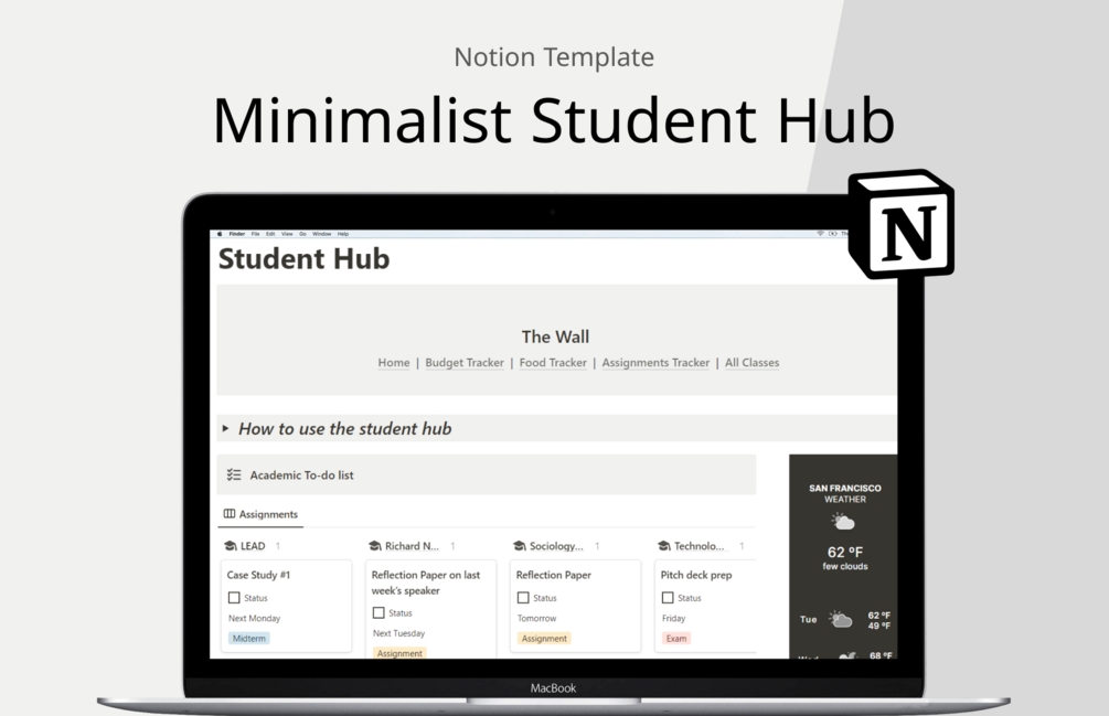 Discover the Essential Student Hub Notion Template, specifically designed for university students seeking a simplified and automated solution to manage their academic and personal lives. This user-friendly, fully customizable, and efficient template is perfect for keeping your finances, meals, and coursework organized and easily accessible.